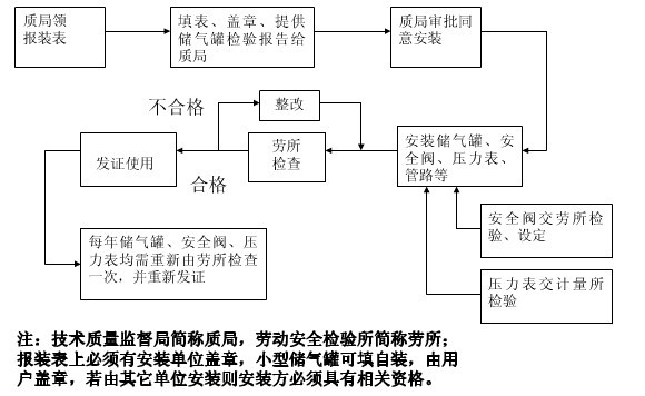 按照国家规定储气罐容积大于1000升且工作压力大于1.3mpa的储气罐,在安装前需报装,安装后需得到劳动安全部门检验合格后才能投入使用,且需每年检查一次。 (看下图) 苏州艾迪克机电
