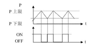 为了满足生产的用气需求,储气罐内气体必须保持一定的压力。理想状态是供气压力刚好满足需求,保持压力不变,实际上是办不到的,通常是空压机排气量大于实际用气量,空压机保持恒速运转,此时储气罐内气体越积越多,直到压力上升到设定的最高压力。通常采取以下两种方法解决高压问题:一是使空压机卸负荷运行,保持运转但不产生气体,此时空压机的输出功率一般在额定的50%左右,且这部分消耗全是浪费的;二是停止空压机的运行,这样看起来是节约了电能消耗,但因空气储存的容积有限,当气体低于下限压力值时,空压机再次以额定转速给储气罐加压,直到压力达到上限压力而卸载,转入空载运行,如此循环,如图1所示。这样频繁的起动和停止,对电网和设备的冲击都很大,也会缩短空压机本身的工作寿命。实际上,空压机驱动时轴功率与排气压力和其自身的转速有直接的正比关系,也就是说在实际的运行中,由于设备用气随时在发生变化,致使空压机不能保持在额定的工况下运行,而其排气压力的高低则直接影响实际的轴功率的大小。