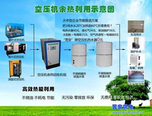 耗能一直是空压机行业难以解决的问题,空压机余热回收的出现让很多空压机人士看到了福音,它可以回收空压机75%的废热,对于空压机用户来说,虽然不能让空压机零耗能,但可以很大程度上解决他们耗能大的问题。苏州涂料厂有2台螺杆式空压机,一台活塞式空压机,介于现在空压机余热回收技术的发展和利益的考虑,我们建议涂料厂只做3台螺杆式空压机的余热回收。苏州涂料厂采用空压机热水回收系统后,所产生热水为1200名员工解决了热水难题,5台空压机热水器空压机热水器,机器运行工况是3用2备.每年可以节省柴油费用65万人民币.